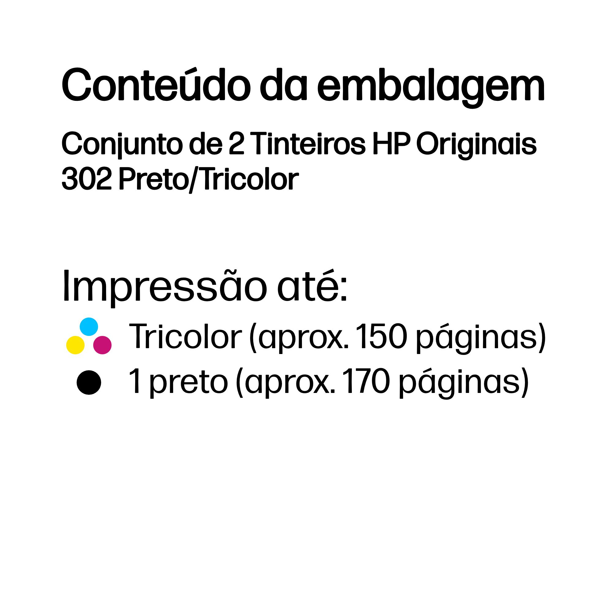 HP Conjunto de 2 Tinteiros Originais 302 Preto/Tricolor