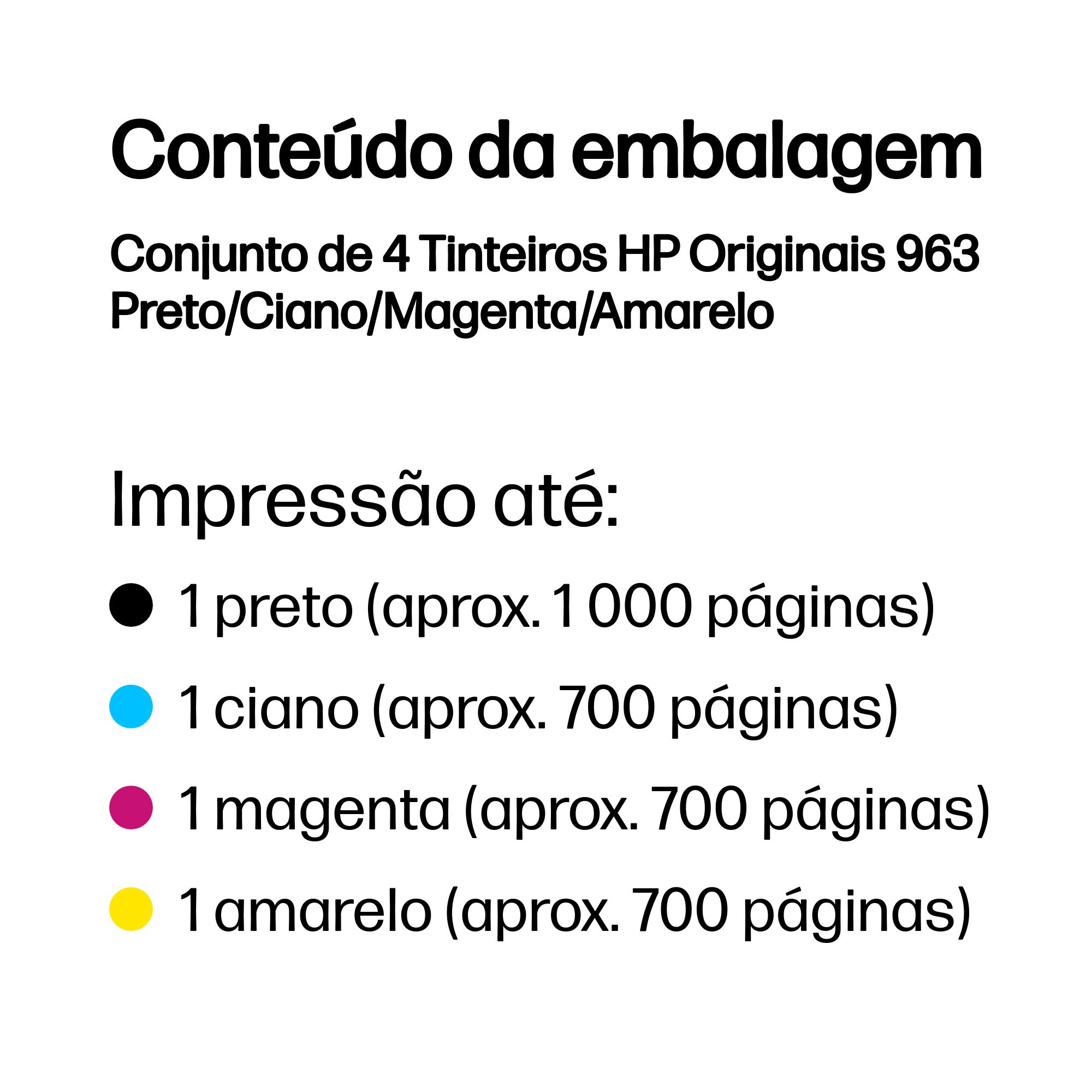 HP Conjunto de 4 Tinteiros Originais 963 Preto/Ciano/Magenta/Amarelo