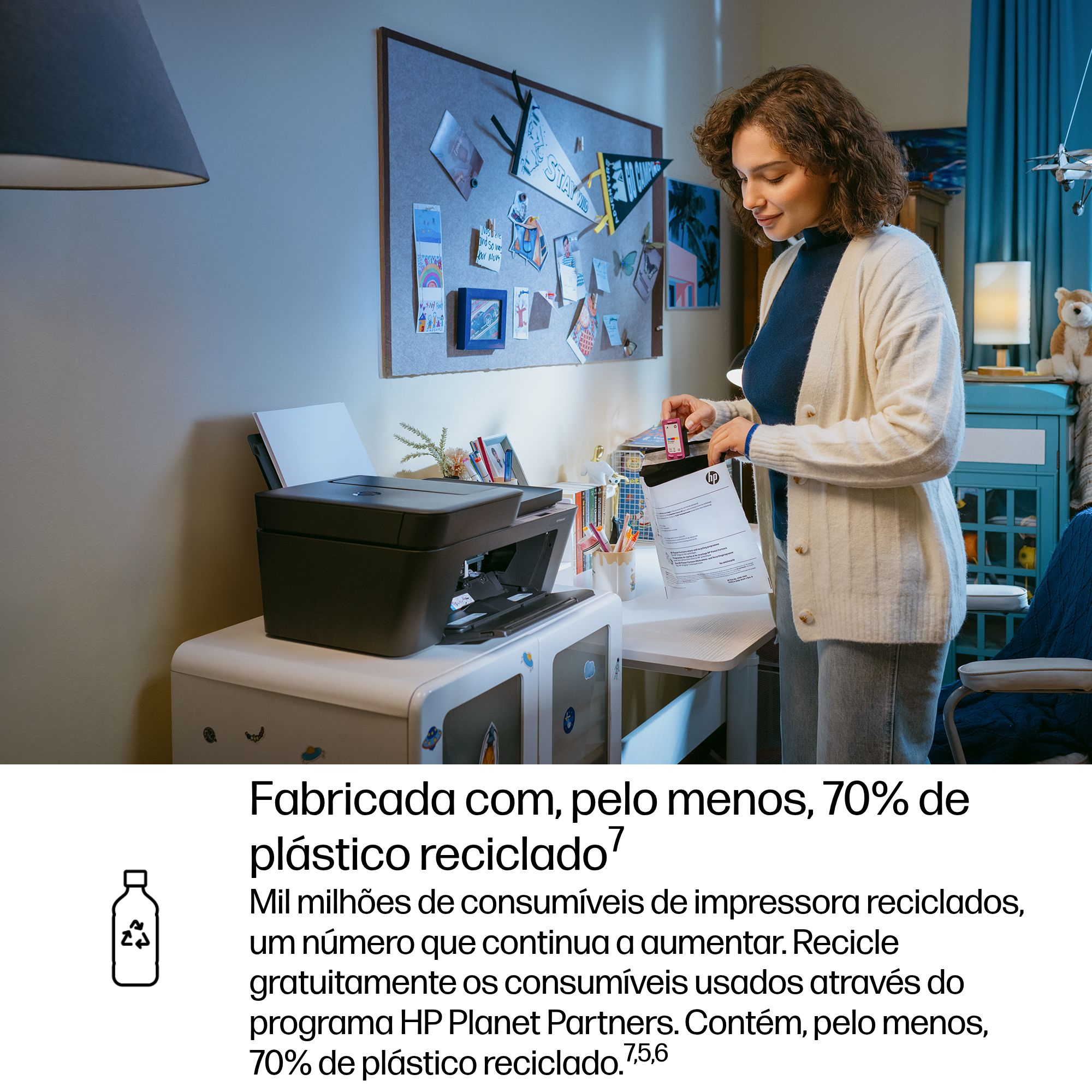 Fabricada com, pelo menos, 70% de plástico reciclado<sup>[7]</sup>