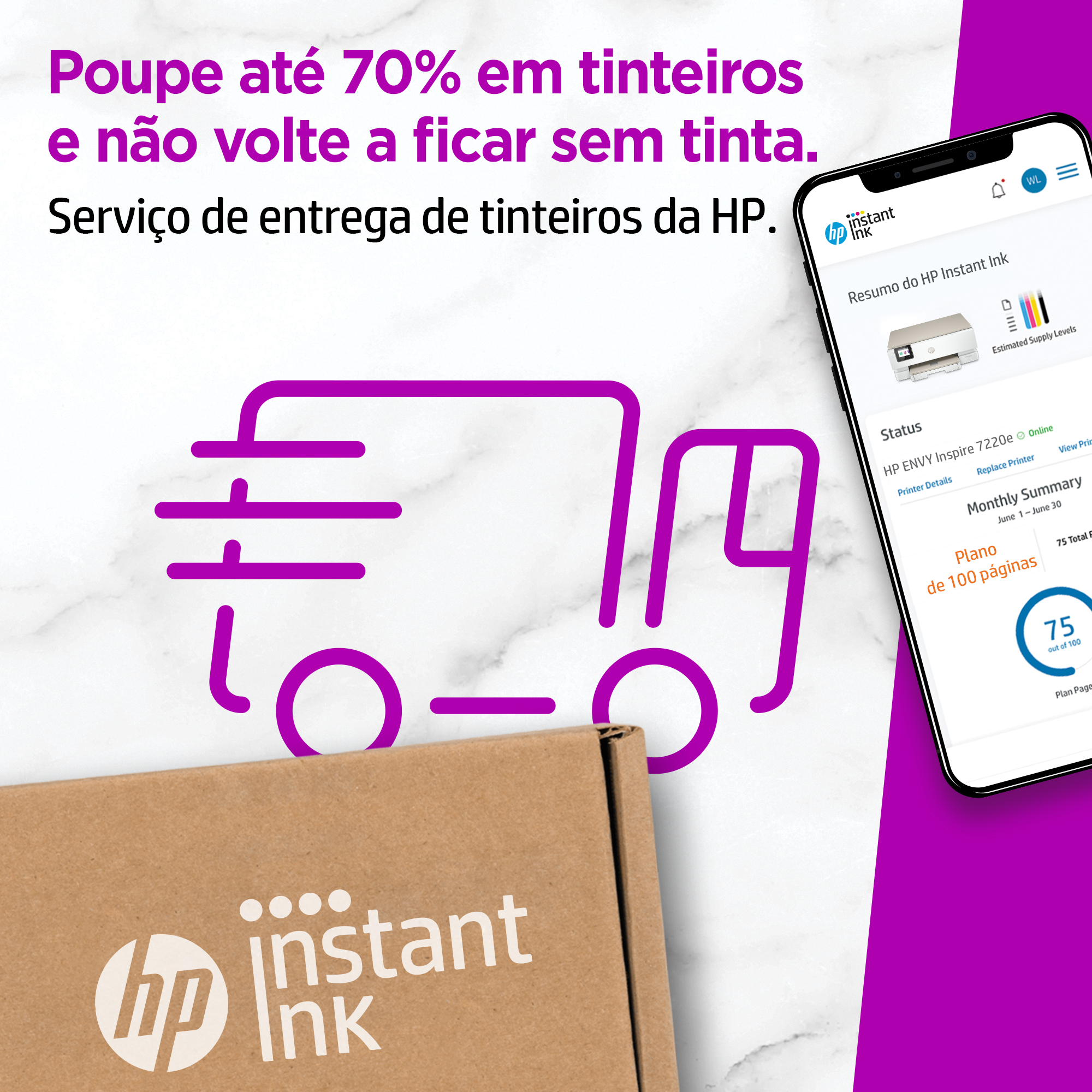 Primeiros 3 meses de HP Instant Ink incluídos[9]; decorridos 3 meses, será cobrada automaticamente uma mensalidade, a menos que o Serviço seja cancelado.