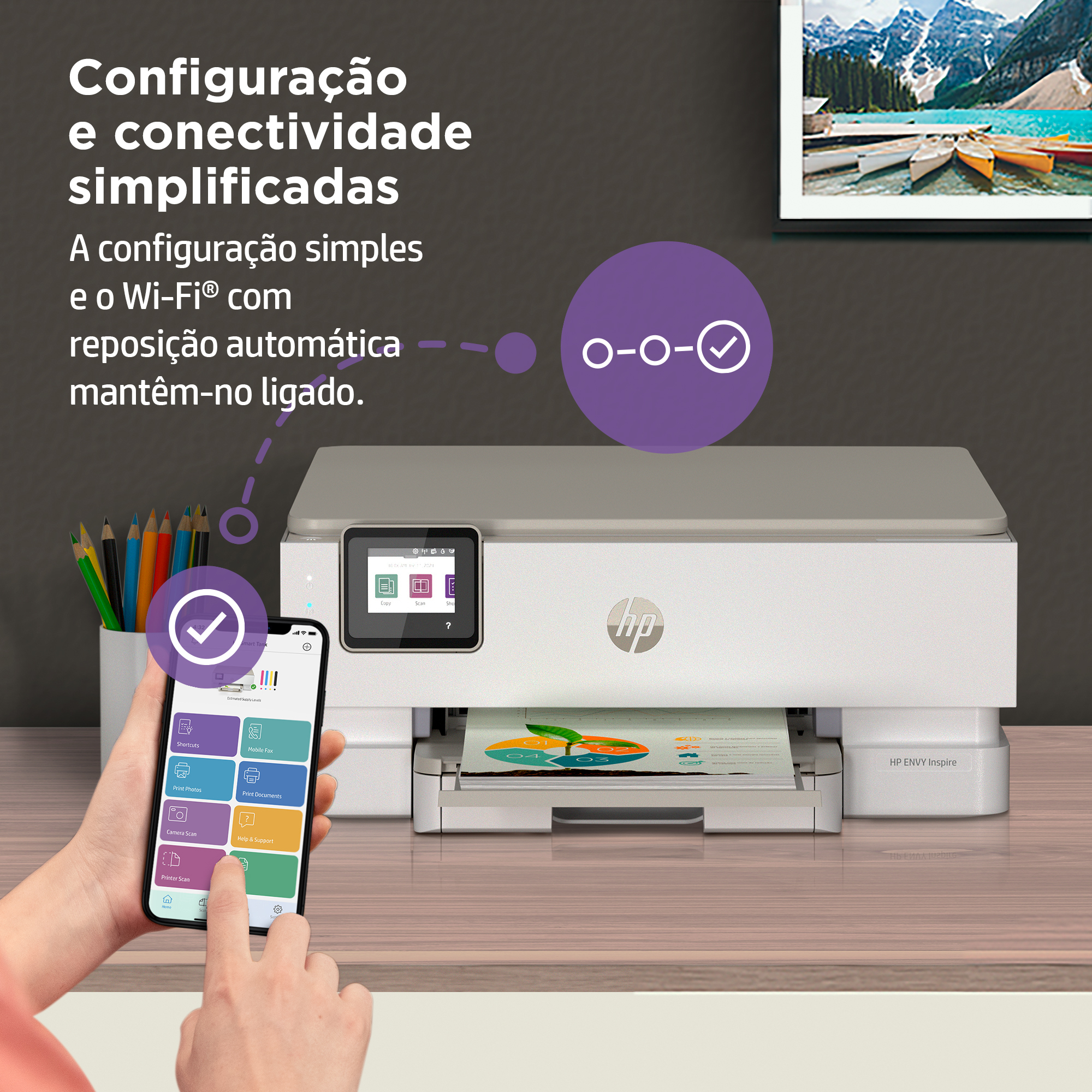 Esta é uma impressora compatível com o HP+. Escolha o HP+ no processo de configuração da impressora para ativar os benefícios/vantagens. O HP+ requer uma conta HP, ligação ininterrupta à Internet e a utilização exclusiva de Tinteiros HP Originais durante a vida útil da impressora. Saiba mais em: http://www.hp.com/plus