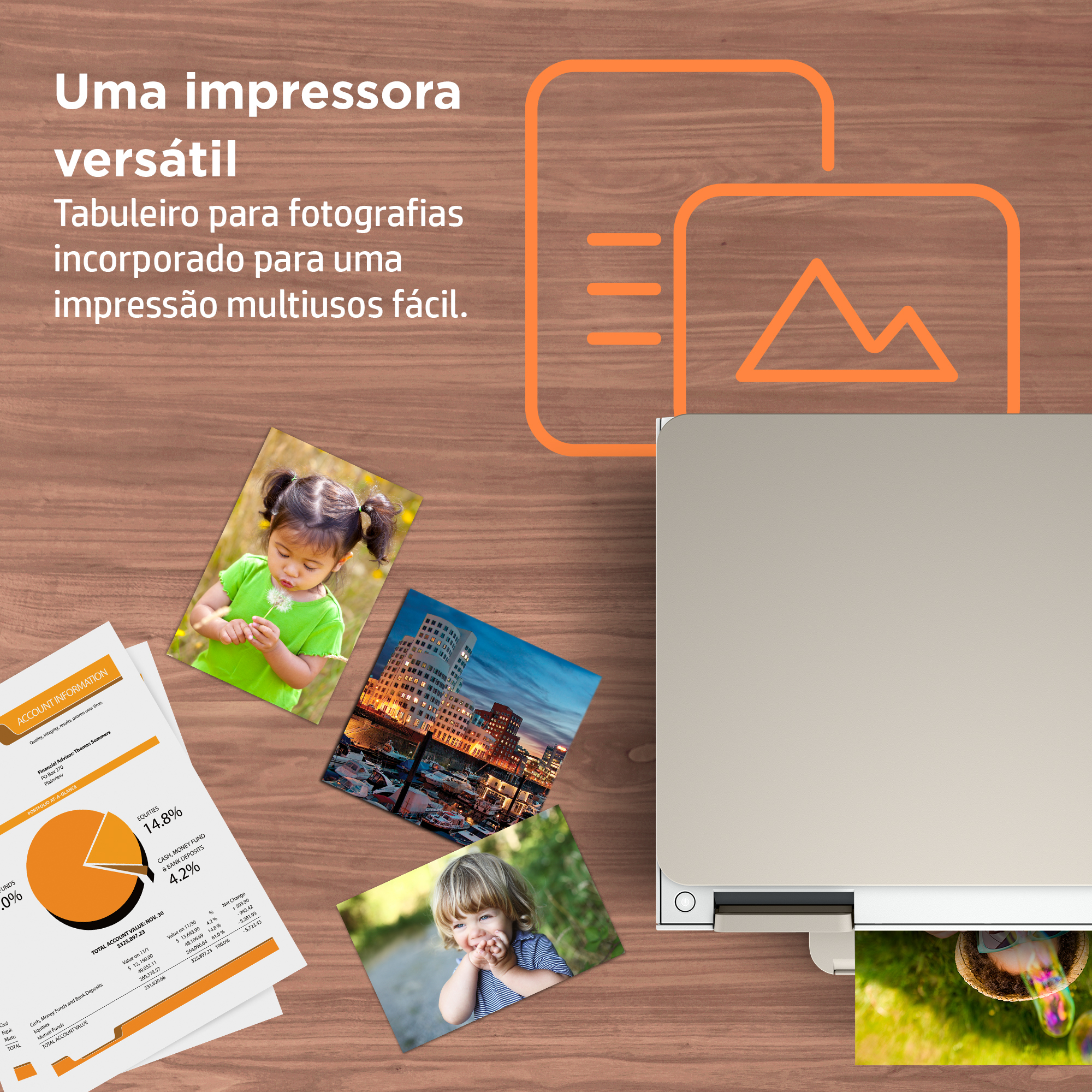 Use a aplicação HP Smart para realizar facilmente várias tarefas em simultâneo – impressão, digitalização e cópia de qualquer dispositivo.[1]