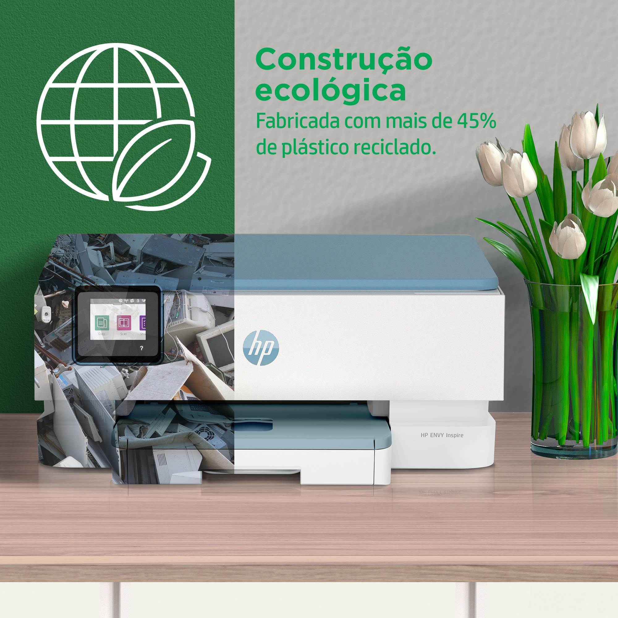 Uma impressora fabricada com mais de 45% de plástico reciclado.