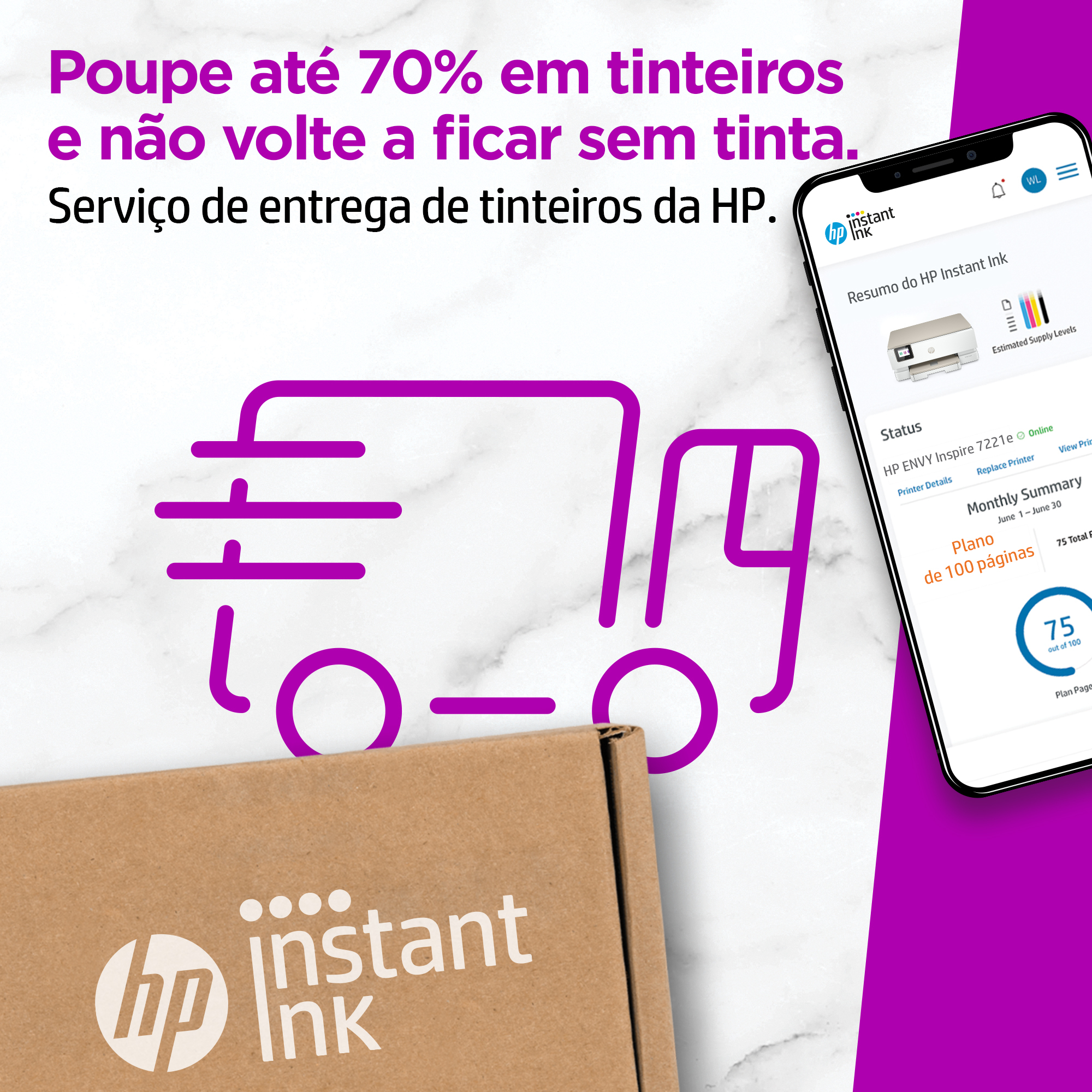 Poupe até 70% em tinteiros com o HP Instant Ink.[5] Adira para receber tinteiros, a partir de 1,79 €/mês.