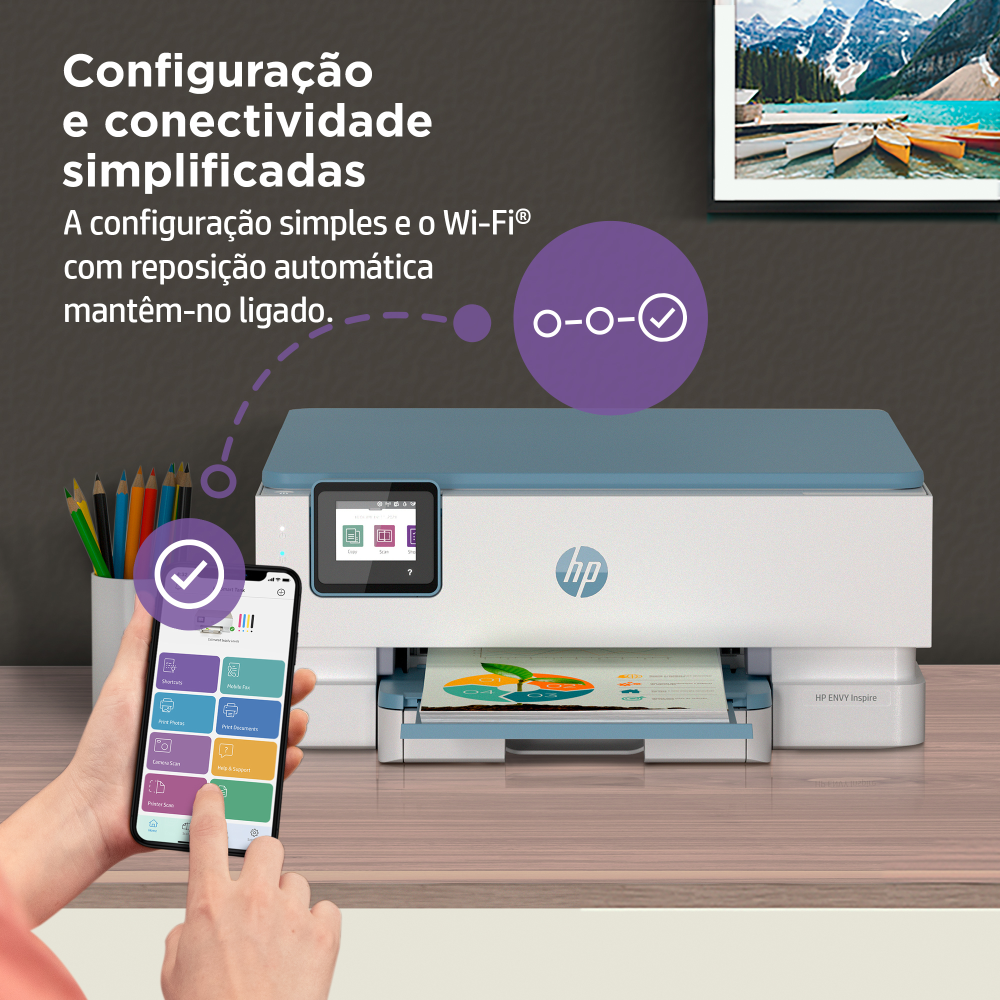 Uma impressora HP+ ligada à nuvem é mais inteligente – mantém-se atualizada e pronta para imprimir.[8]