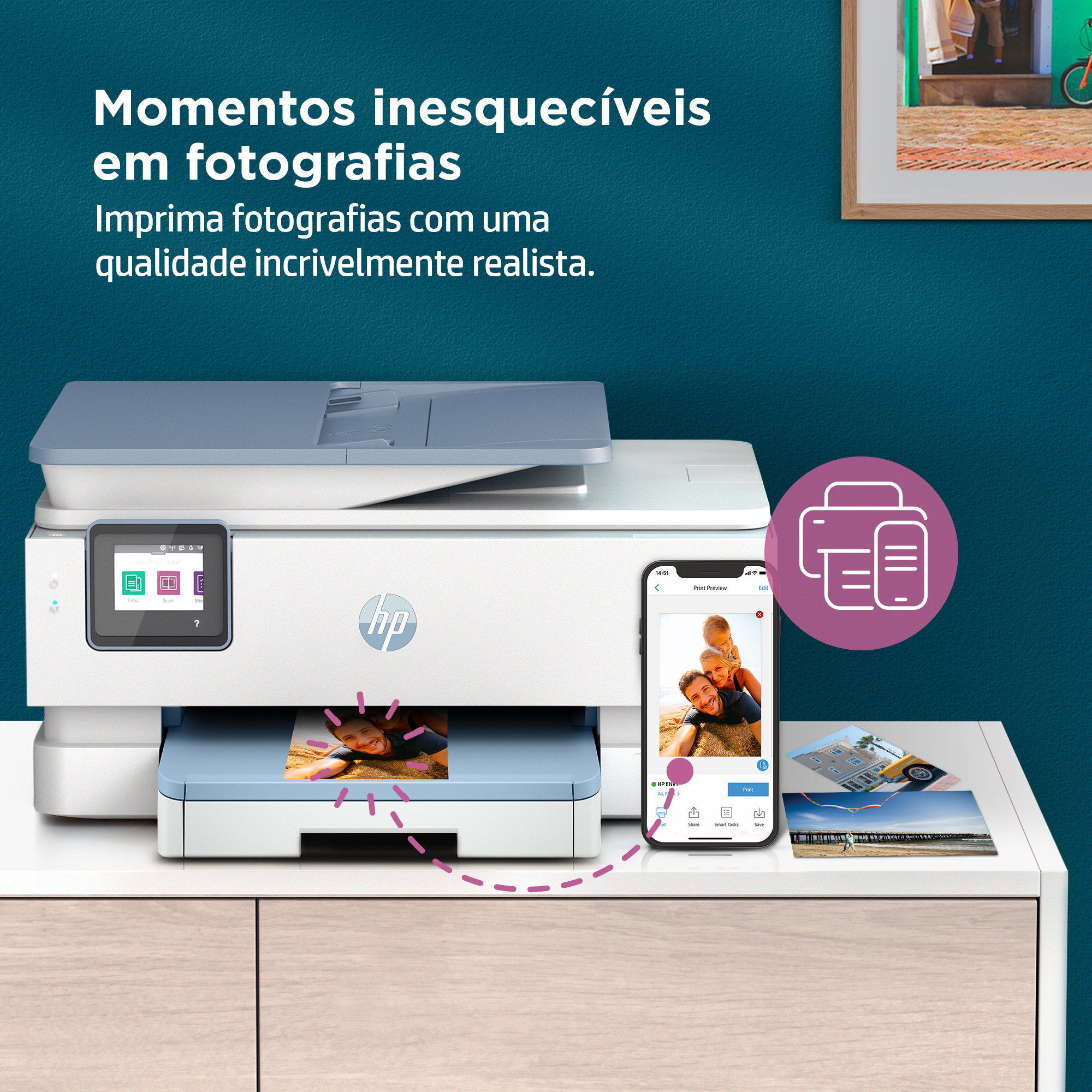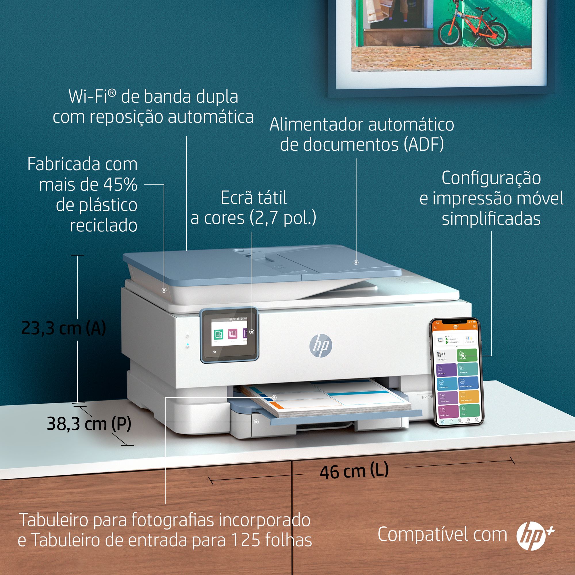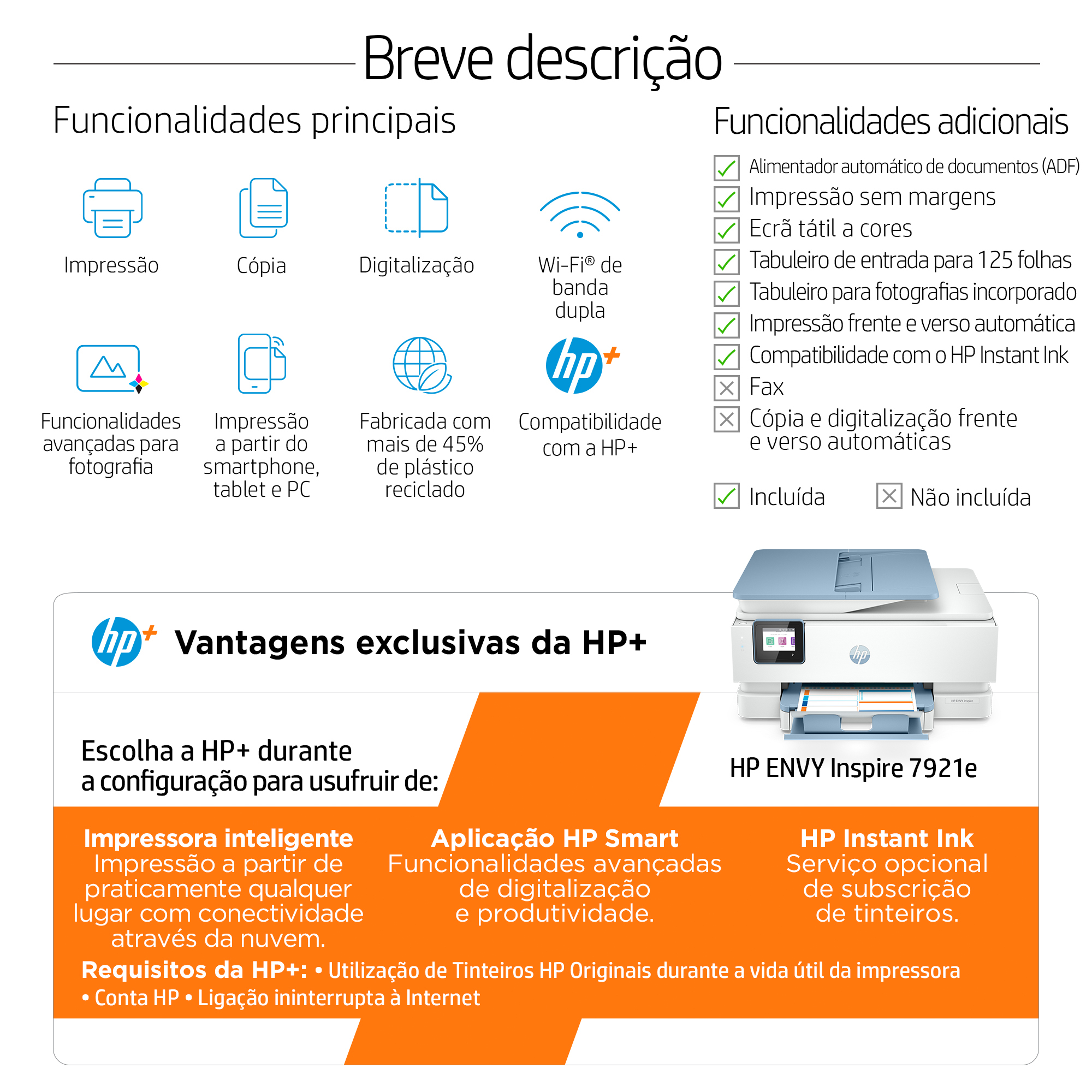 Esta é uma impressora compatível com o HP+. Escolha o HP+ no processo de configuração da impressora para ativar os benefícios/vantagens. O HP+ requer uma conta HP, ligação ininterrupta à Internet e a utilização exclusiva de Tinteiros HP Originais durante a vida útil da impressora. Saiba mais em: http://www.hp.com/plus