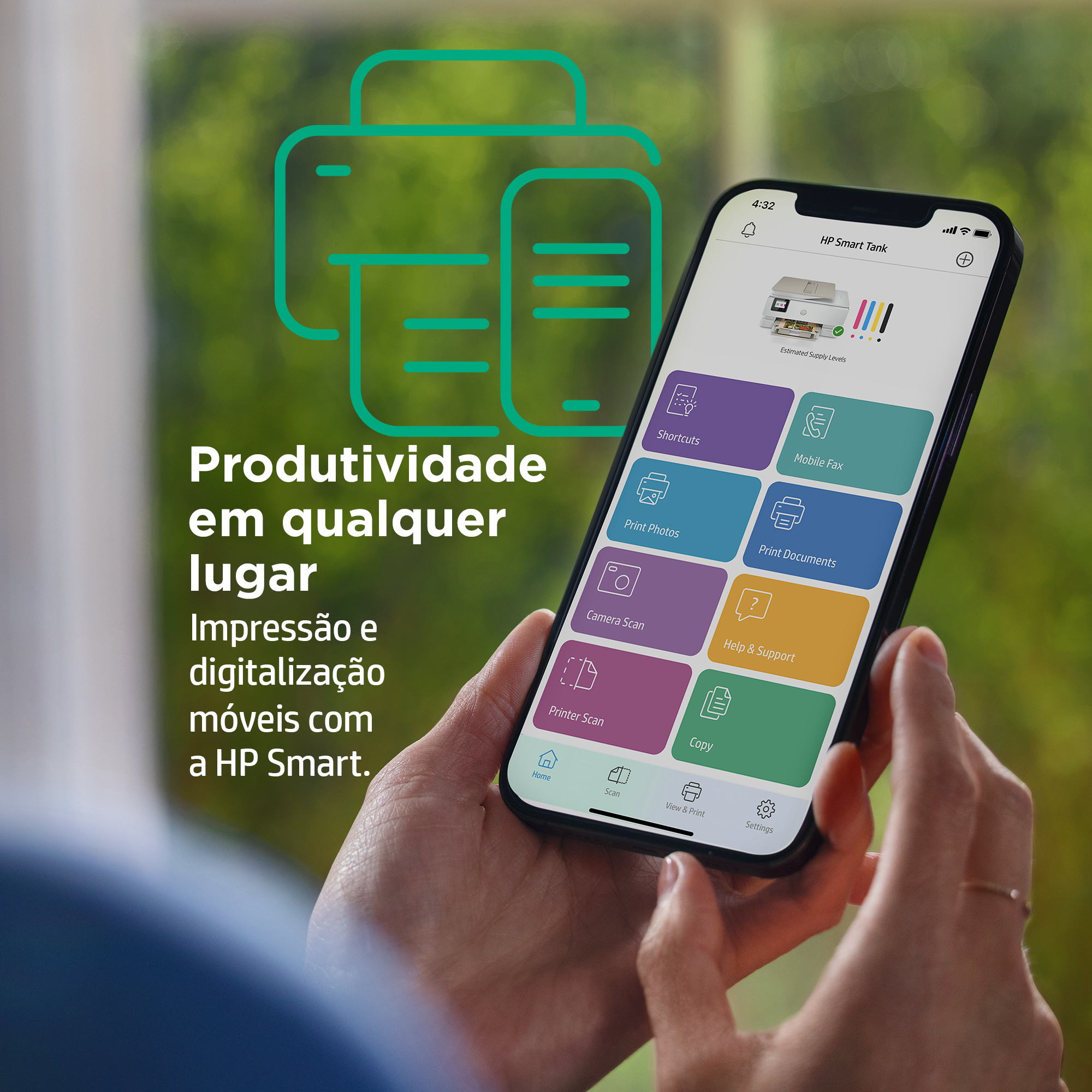 Use a aplicação HP Smart para realizar facilmente várias tarefas em simultâneo – impressão, digitalização e cópia de qualquer dispositivo[1].