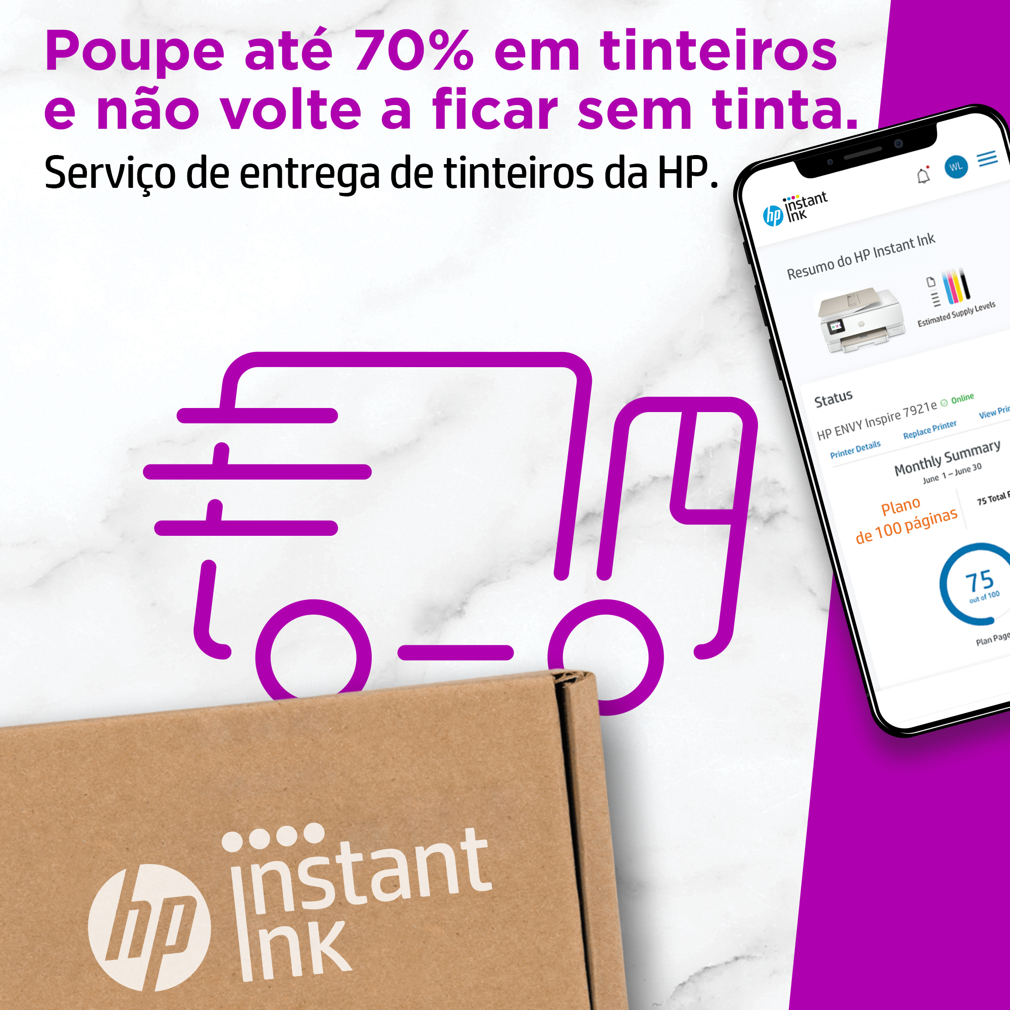 Primeiros 3 meses de HP Instant Ink incluídos[9]; decorridos 3 meses, será cobrada automaticamente uma mensalidade, a menos que o Serviço seja cancelado.
