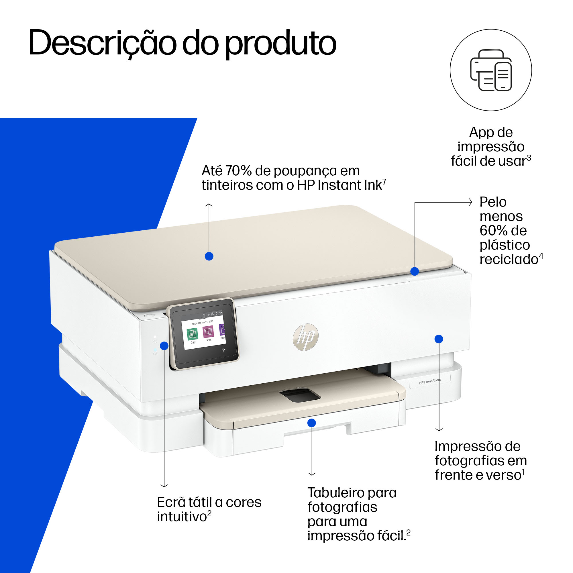 Esta Multifunções HP ENVY Photo contém, pelo menos, 60% de plástico reciclado.[4]