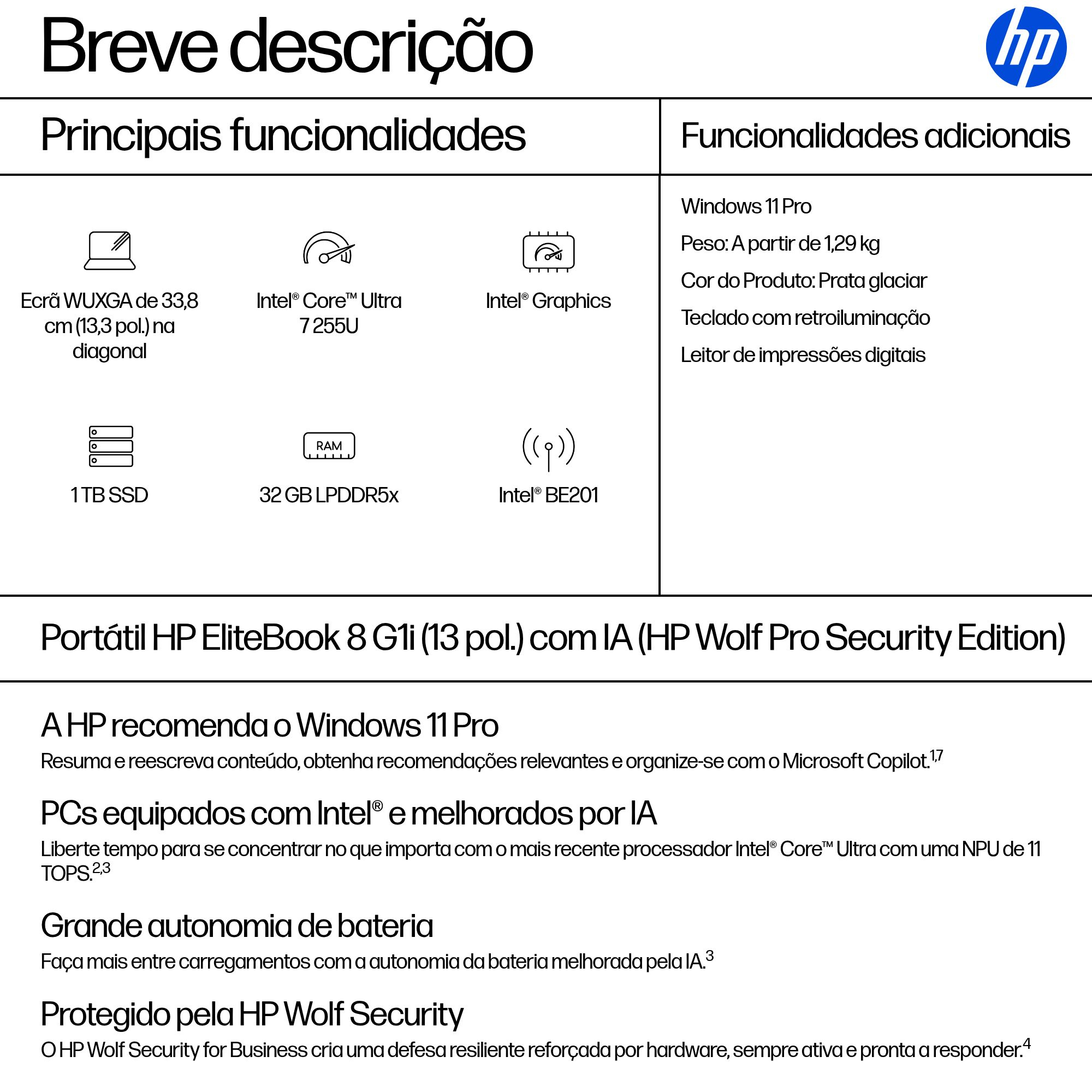 | Software incorporado | HP Wolf Pro Security Edition (1 ano) |