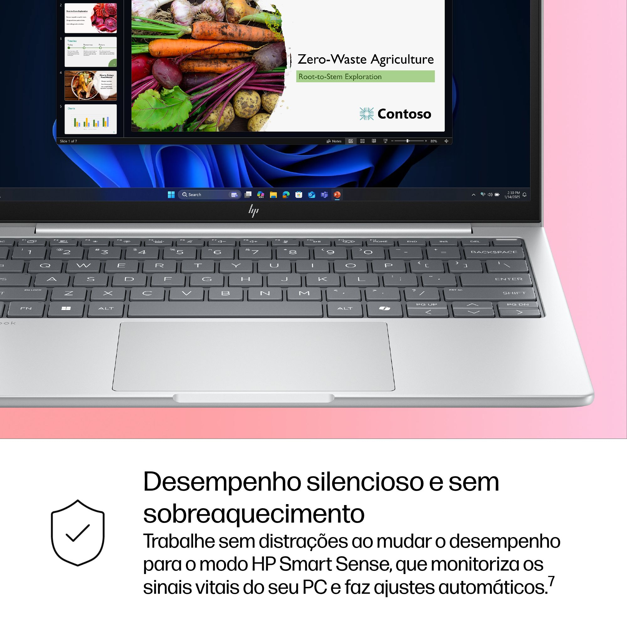 Trabalhe em qualquer lugar, sem comprometer o desempenho, com o Windows 11 e com a tecnologia de colaboração, segurança e conectividade da HP. Resuma e reescreva conteúdos, obtenha recomendações de conteúdos relevantes e mantenha-se organizado com o Microsoft Copilot.[5]