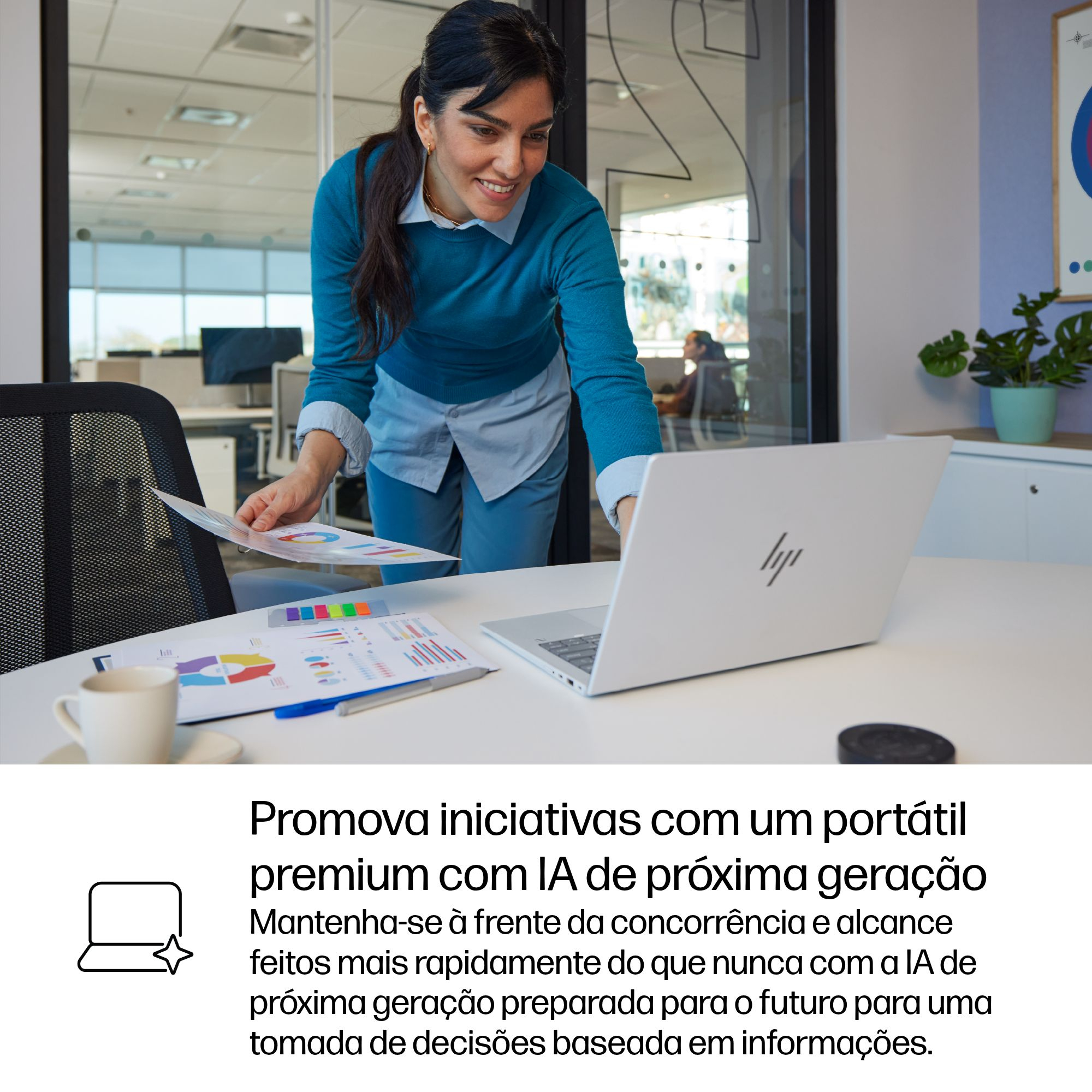 Impulsione a sua empresa com a IA que utiliza os seus próprios dados para tomar decisões comerciais estratégicas. Descubra o que pode fazer com aplicações de IA[4], funcionalidades de colaboração avançadas e uma autonomia da bateria otimizada no HP EliteBook X G1i com IA de próxima geração.