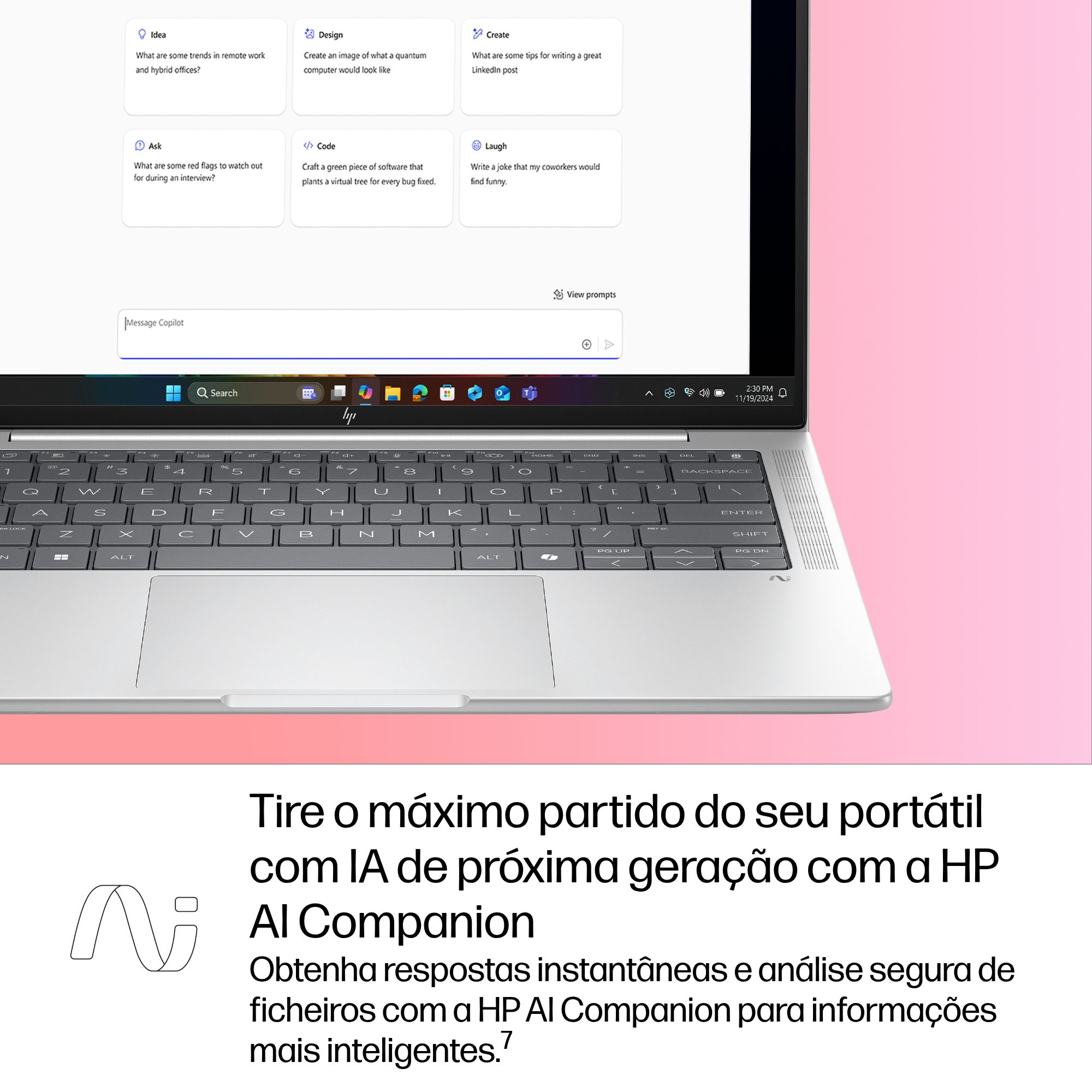 Trabalhe em qualquer lugar, sem comprometer o desempenho, com o Windows 11 e com a tecnologia de colaboração, segurança e conectividade da HP. Resuma e reescreva conteúdos, obtenha recomendações de conteúdos relevantes e mantenha-se organizado com o Microsoft Copilot.[6]