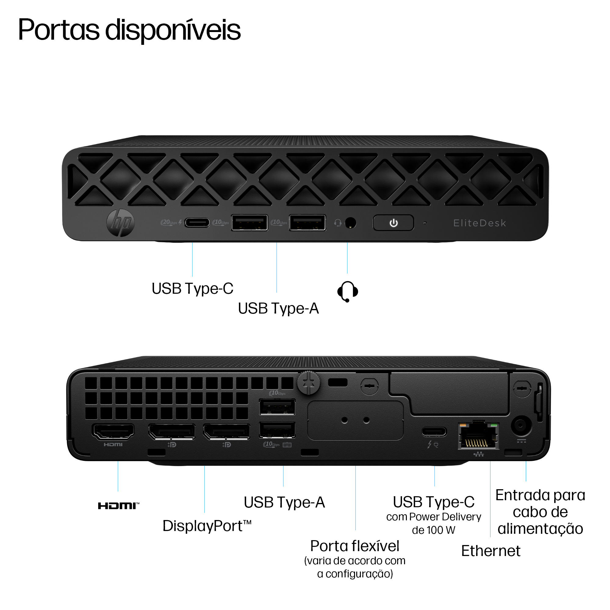 HP EliteDesk 8 Mini G1i Desktop AI PC Intel Core Ultra 5 245T 16 GB DDR5-SDRAM 512 GB SSD Windows 11 Pro Mini PC Preto
