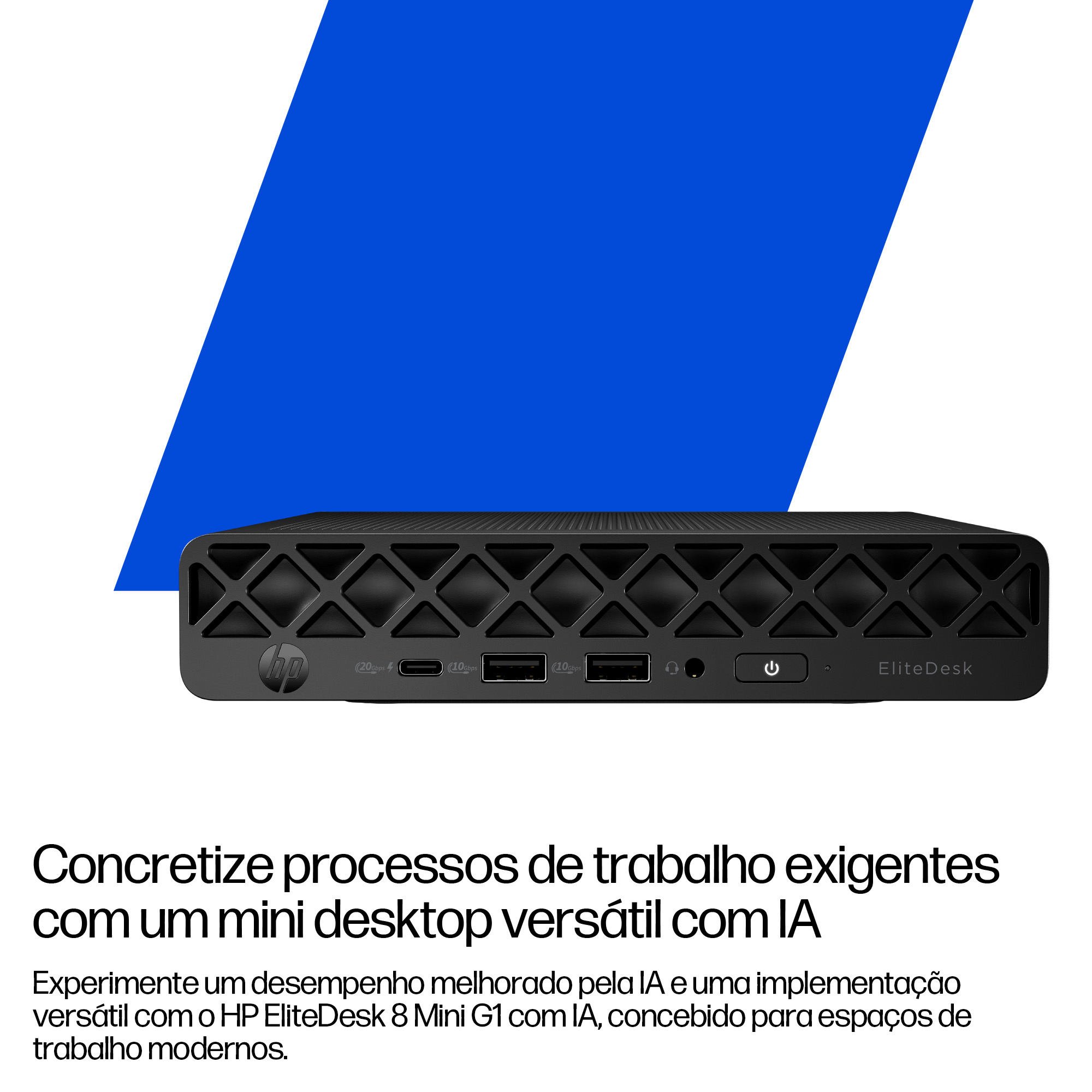 Oferecendo um desempenho excecional melhorado pela IA com o mais recente processador Intel Core™ Ultra[2] com uma NPU de até 13 TOPS[3], o HP EliteDesk 8 Mini G1i compacto com IA, opções de implementação versáteis e funcionalidades de segurança avançada é a escolha ideal para espaços de trabalho modernos.