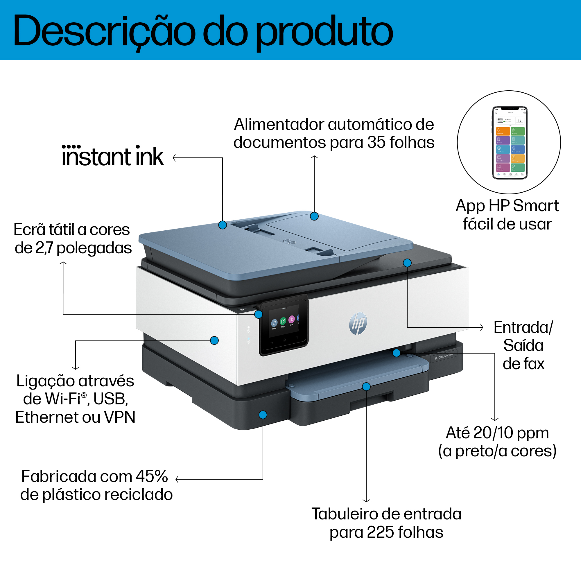 Esta é uma impressora compatível com o HP+. Escolha o HP+ no processo de configuração da impressora para ativar os benefícios/vantagens. O HP+ requer uma conta HP, ligação ininterrupta à Internet e a utilização exclusiva de Tinteiros HP Originais durante a vida útil da impressora. Saiba mais em: http://www.hp.com/plus
