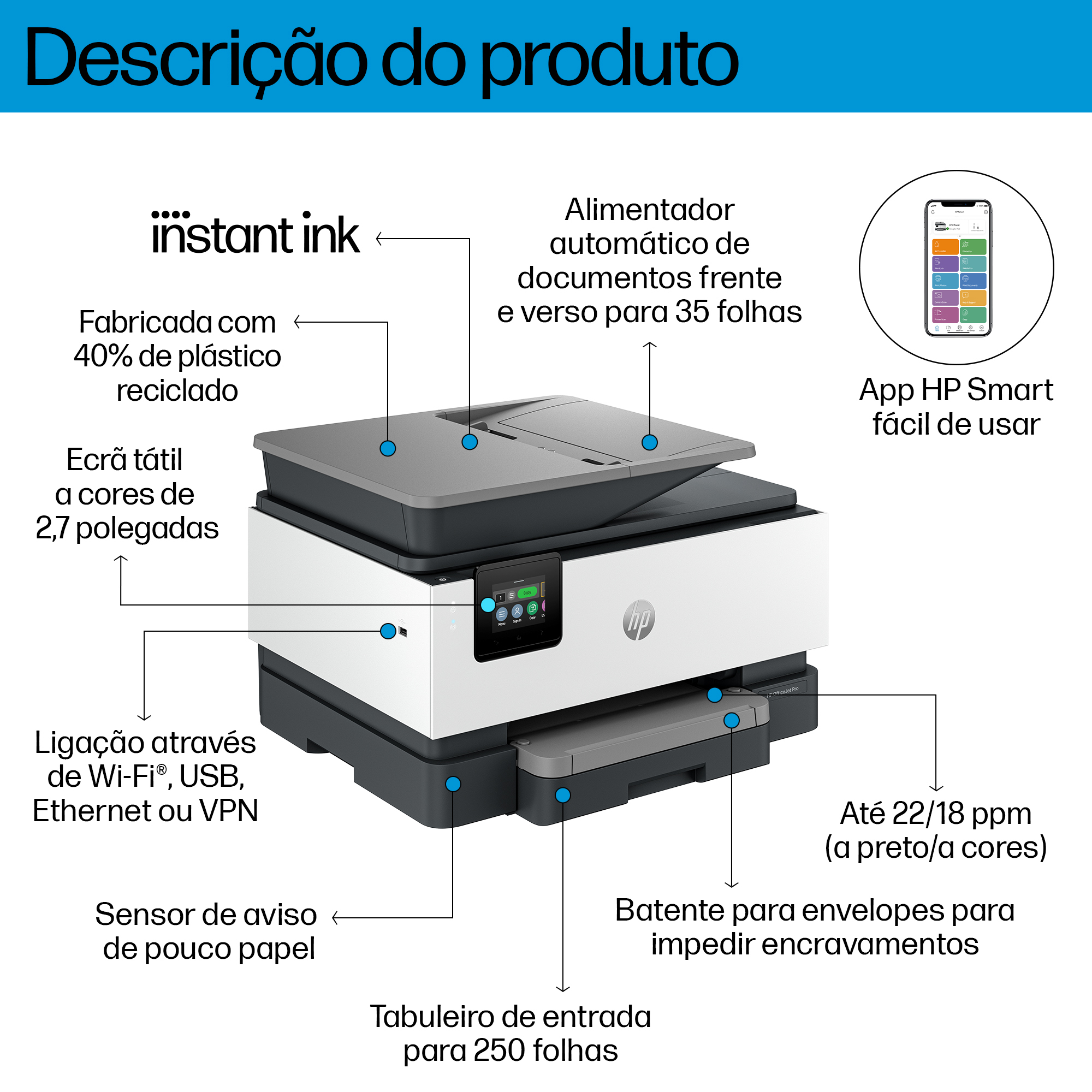 Esta é uma impressora compatível com o HP+. Escolha o HP+ no processo de configuração da impressora para ativar os benefícios/vantagens. O HP+ requer uma conta HP, ligação ininterrupta à Internet e a utilização exclusiva de Tinteiros HP Originais durante a vida útil da impressora. Saiba mais em: http://www.hp.com/plus