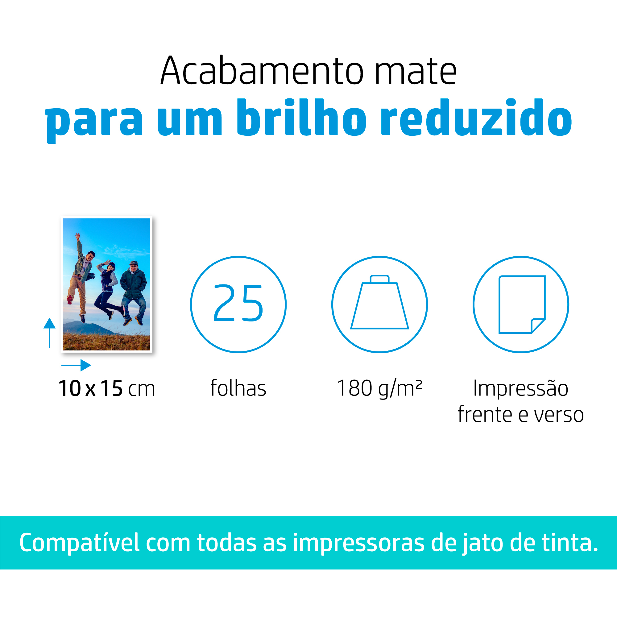 Papel de Fotografia HP Mate, 180 g/m2, 10 x 15 cm (101 x 152 mm), 25 folhas