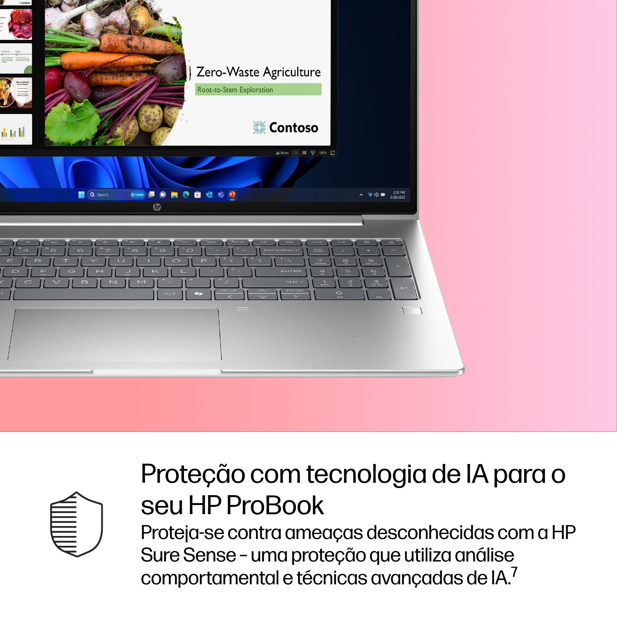 O Portátil HP ProBook 4 G1i de 16 polegadas com IA oferece às empresas em crescimento desempenho profissional, segurança multicamada de endpoint[6], durabilidade e facilidade de upgrade do hardware. Equipado com o mais recente processador Intel[2] com uma NPU de 11 TOPS[4] e uma longa autonomia da bateria, este PC repleto de funcionalidades está preparado para o futuro para produtividade a longo prazo e exploração de IA.