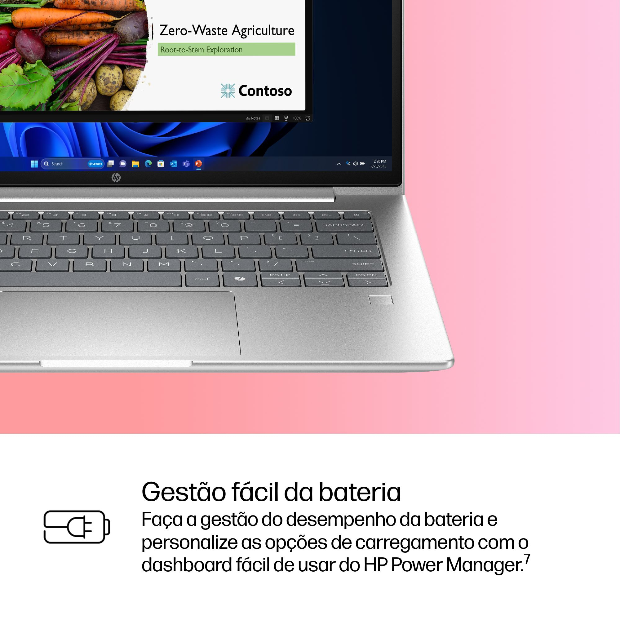 Trabalhe em qualquer lugar, sem comprometer o desempenho, com o Windows 11 e com a tecnologia de colaboração, segurança e conectividade da HP. Resuma e reescreva conteúdos, obtenha recomendações de conteúdos relevantes e mantenha-se organizado com o Microsoft Copilot.[1]