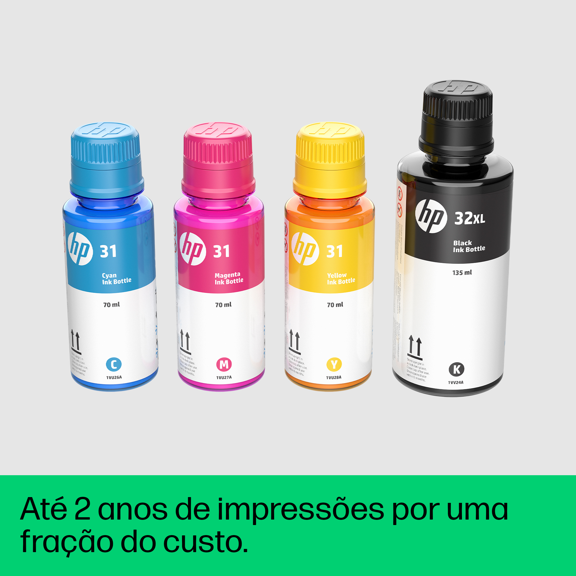 O design inovador dos frascos de tinta da HP proporciona a experiência de enchimento mais limpa e fácil para as impressoras Ink Tank da HP.