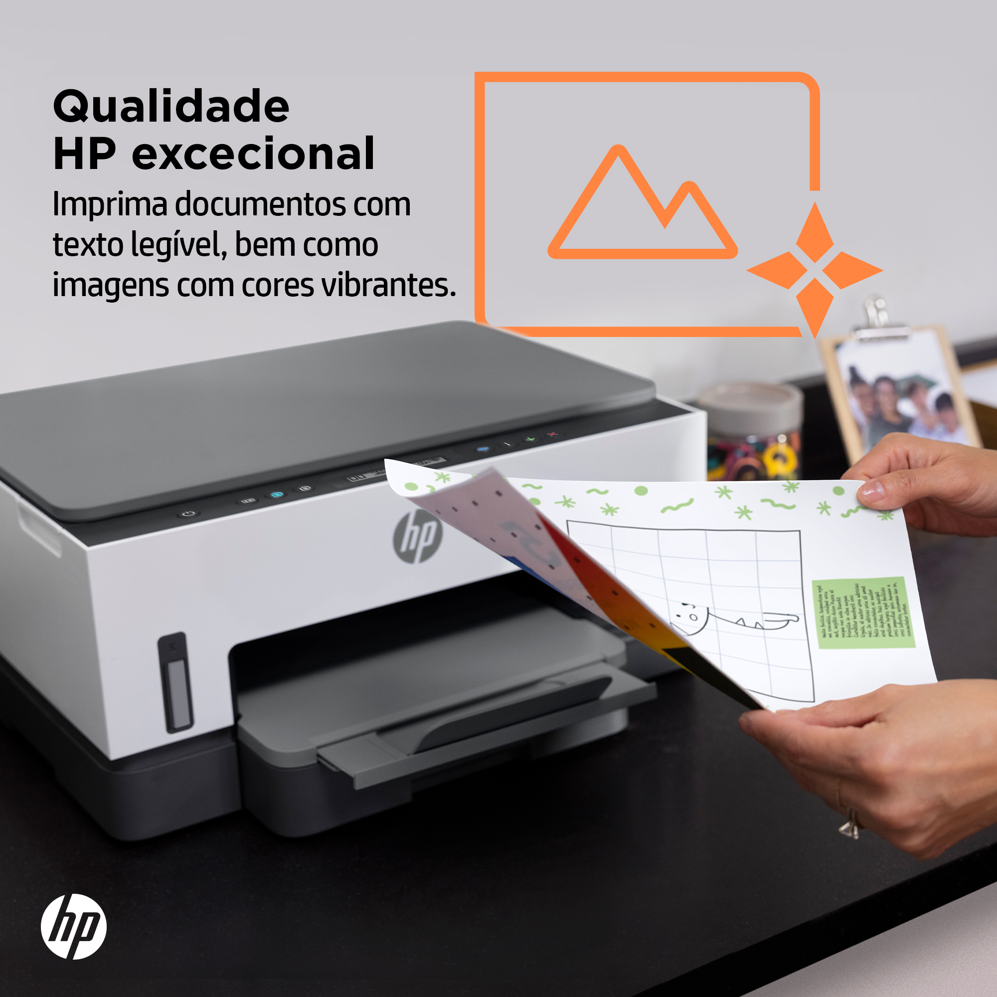 Frascos de tinta HP Originais incluídos permitem imprimir até 12 000 páginas a preto e branco ou até 8000 páginas a cores.[5]