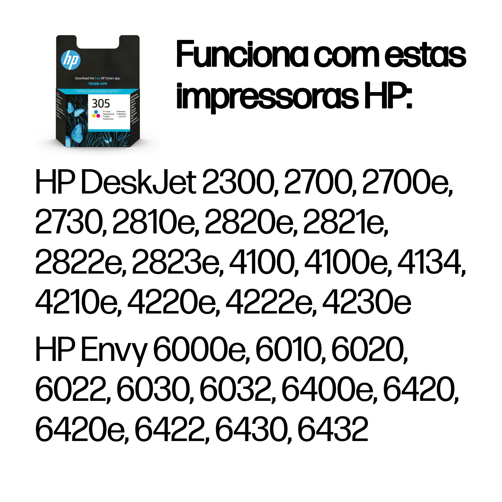 | Compatibilidade | DeskJet 2300 AiO, DeskJet 2700 AiO, DeskJet Plus 4100 AiO, ENVY 6000 AiO, ENVY Pro 6400 AiO |