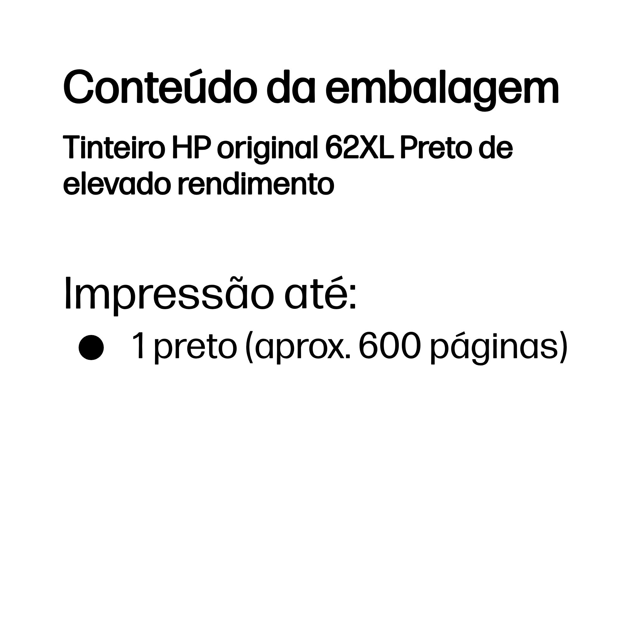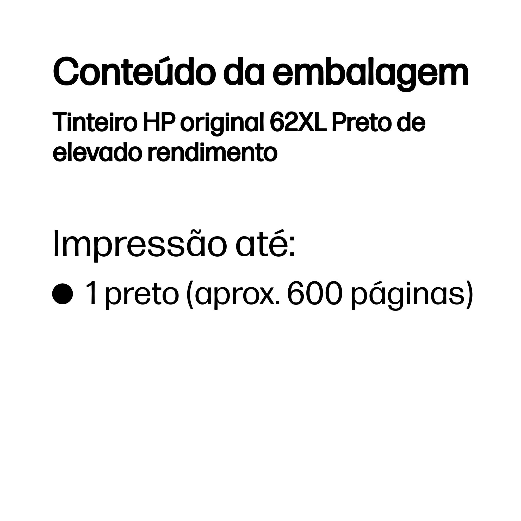 Tinteiro HP original 62XL Preto de elevado rendimento